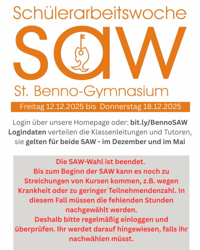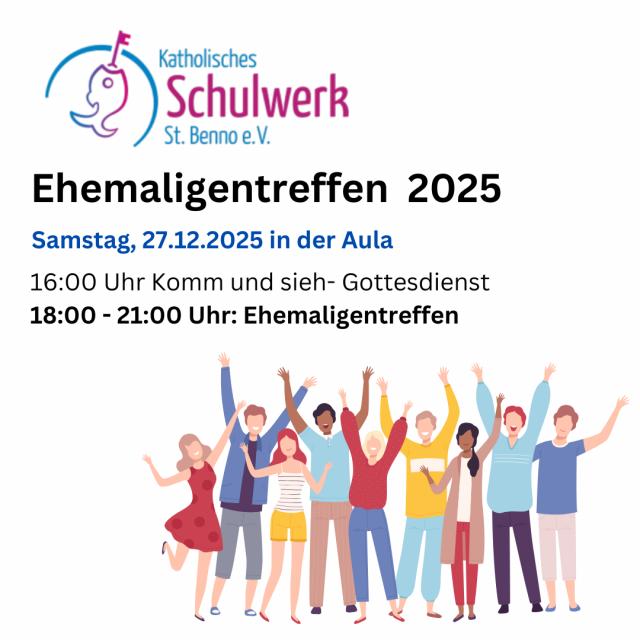 Unsere NeuigkeitenBei uns ist immer was los So7Dez2025 Komm-und-sieh-Gottesdienst "Aus dem Baumstumpf wächst ein neuer Trieb." (Jes 11,1) Do15Jan2026 Informationsnachmittag für Schülerinnen, Schüler und Eltern der 4. Klasse Sa27Dez2025 Einladung zum Ehemaligentreffen Fr12Dez2025 "Velo que bonito - Schau, wie schön" Einladung zum Adventskonzert mit Basar Mi3Dez2025 Adventskonzert gemeinsam mit den Kapellknaben 19:00 Uhr in der Herz-Jesu-Kirche Informationen zur nächsten SAW 12.12.25 - 18.12.25 So9Nov2025 Weg der Erinnerung 2025 mit dem Fahrrad zu Stätten jüdischen Lebens und Leidens in Dresden Mi12Nov2025 "Gute oder falsche Klicks" Erste Veranstaltung des BennoKollegs mit Prof. Dr. Nina Weimann-Sandig NEU: Termine für 2025/26 Willkommen unserem Indienaustausch Wir sind sehr froh, euch hier zu haben! Di18Nov2025 Musikalische Soirée 2025 am 18. November Anmeldeschluss ist der 13.11.25 Zuwachs für das Hausmanagement-Team Karl und Annelies unterstützen Herrn Baubkus im neuen Schuljahr Alle Neuigkeiten