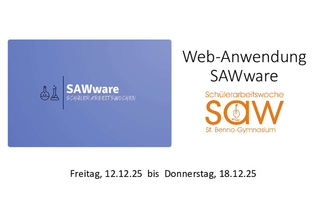 Die Schülerarbeitswochen (kurz SAW) bieten den Schülerinnen und Schülern des St. Benno-Gymnasiums verschiedene Möglichkeiten des Förderns und Vertiefens. Gemeinsames Lernen wird in anderer Form als dem täglichen Unterricht - in kleineren Lerngruppen, fächerverbindend und fachübergreifend - möglich. Die Schülerinnen und Schüler können Stoffgebiete nachholen oder vertiefen, über den Schulstoff hinaus Wissen erwerben oder sich über Themen zur Berufsfindung informieren.