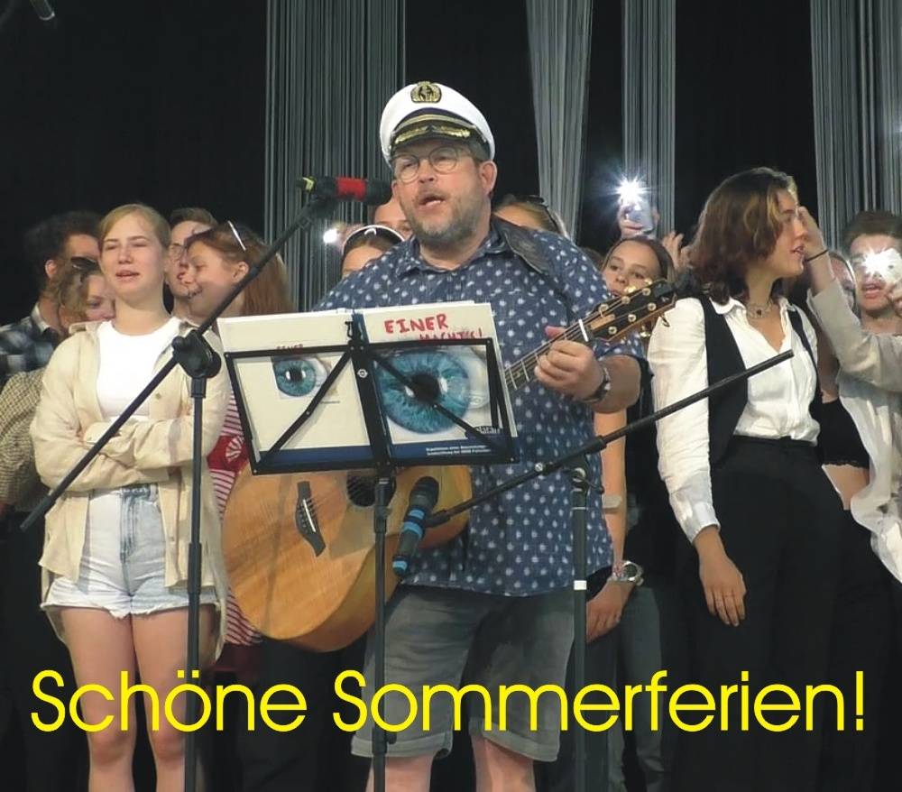 Erlebnisreiche Sommerferien!Herr Martin verabschiedete uns in die Ferien mit seinem traditionellen Lied ...