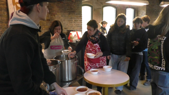 Im Jugendzentrum Jugendkirche Trinitatis trafen sich danach alle Teilnehmenden zu einem abschließenden Beisammensein bei einer Suppe, die Mitglieder der Jüdischen Gemeinde Dresden vorbereitet hatten.