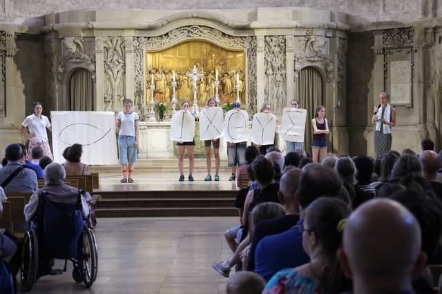 Zur Bedeutung der Fischsymbolik hatten Jugendliche ein Anspiel vorbereitet, in dem sie zusammen mit Franziska Mellentin und Carolin Richter - Pädagoginnen der Fachschaft Religion - Denkanstöße zur Thematik gaben.