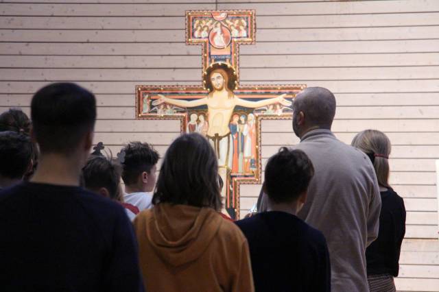 Zum Gottesdienst brachte er das Assisi-Kreuz mit, das im Heiligen Jahr 2025 , auf Wunsch des Bischofs, in der Dresdner Kathedrale als Leihgabe über dem Eingangsportal hing: "Es hat uns daran erinnert, dass Christus für uns die Tür zu Gott ist." Das Kreuz ist Bestandteil der Komm-und Sieh-Kurse, die regelmäßig im St. Benno-Gymnasium stattfinden.