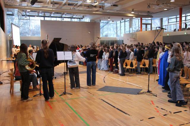 Musikalisch wurde der Gottesdienst vom Benno-Chor unter der Leitung von Maria Fink und dem Leistungskurs Musik unter der Leitung von Uli Heine gestaltet.